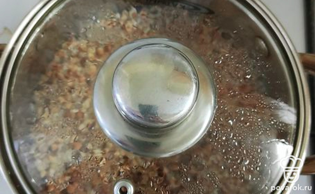 После закипания, посолите по вкусу, накройте гречку крышкой, и убавьте газ. Как вода полностью выкипит, гречка готова.
