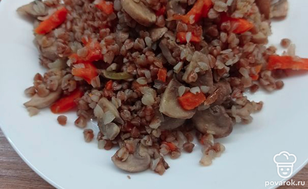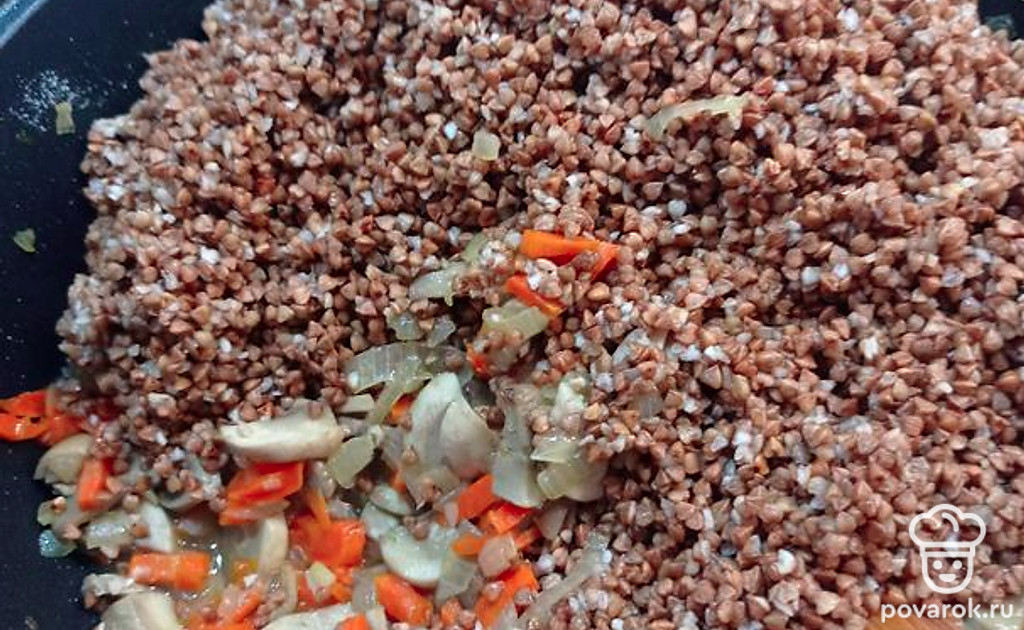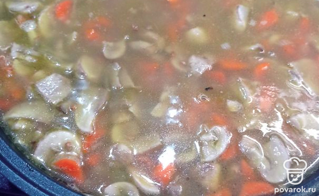 Залить горячей водой в соотношении 1/2, посолить по вкусу. Готовить под закрытой крышкой.
