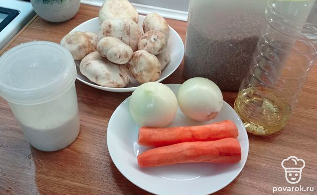 Подготовить все ингредиенты. Овощи и грибы почистить, помыть.