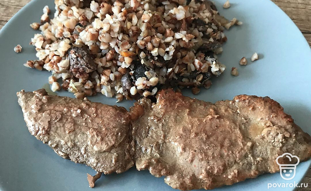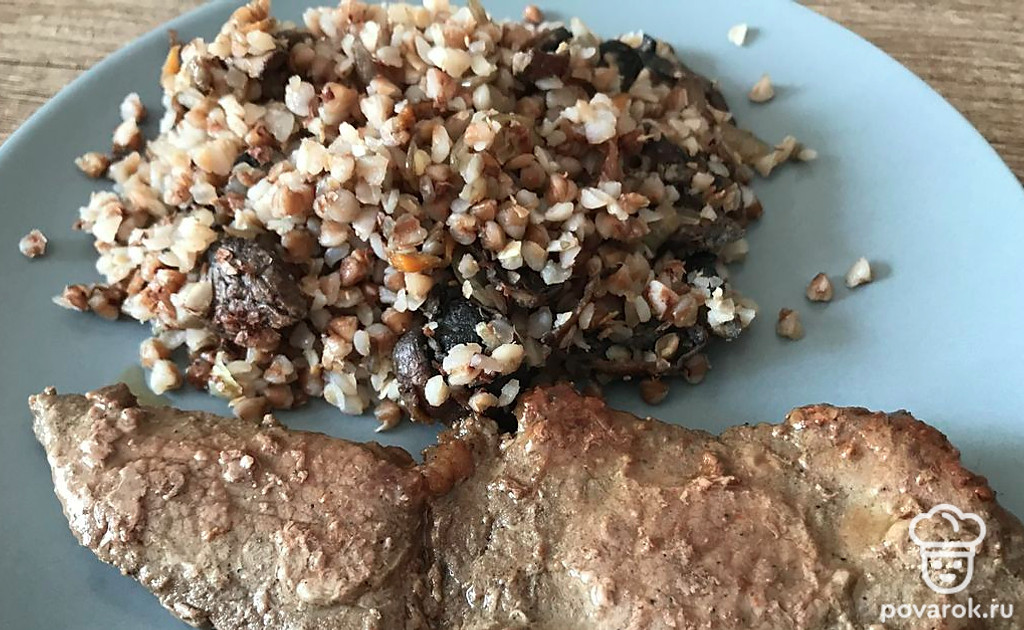 Подавать блюдо можно вообще с чем угодно. Предлагаю вам попробовать гречку с говяжьей отбивной.