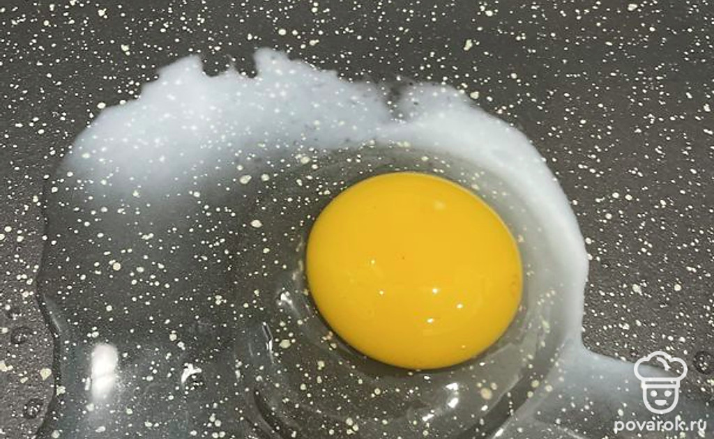 На разогретую сковородку влейте масло и разбейте одно яйцо.