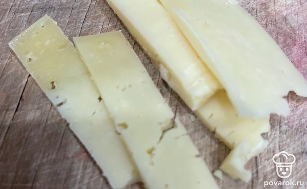 Нарежьте сыр полосочками.