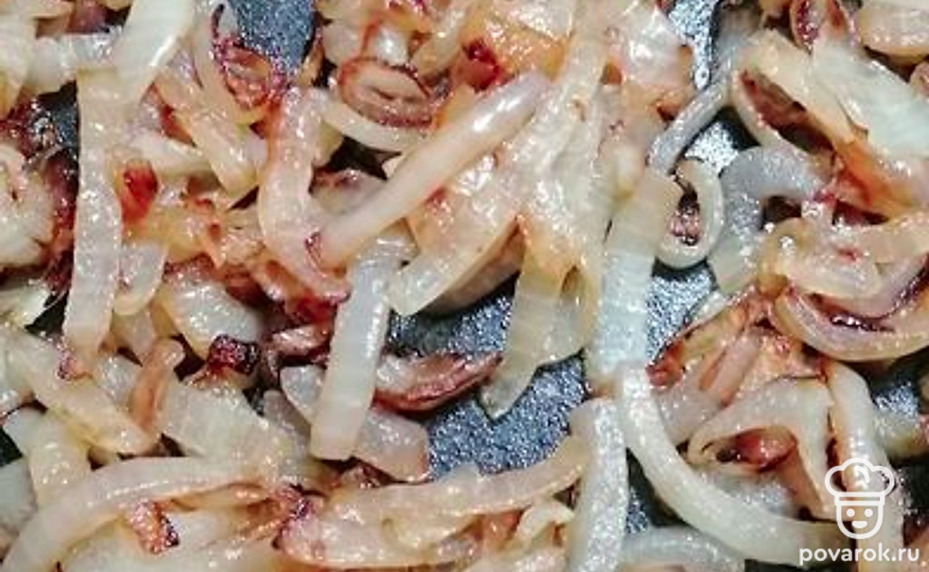 На сковороду вылейте масло, нагрейте, добавьте лук. Обжарьте на среднем огне, помешивая, до золотистого цвета.