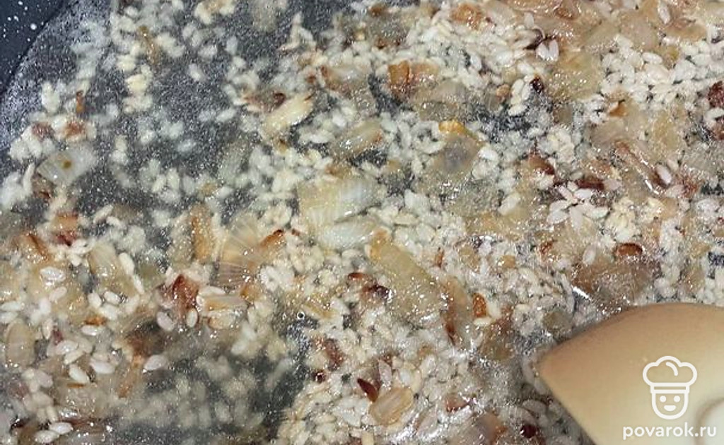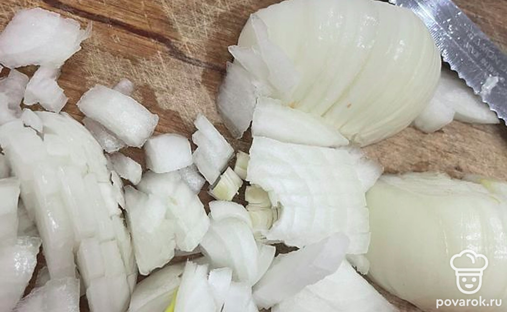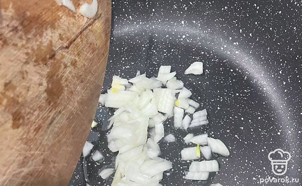 Переложите лук в сковороду и обжарьте на растительном масле до золотистости.