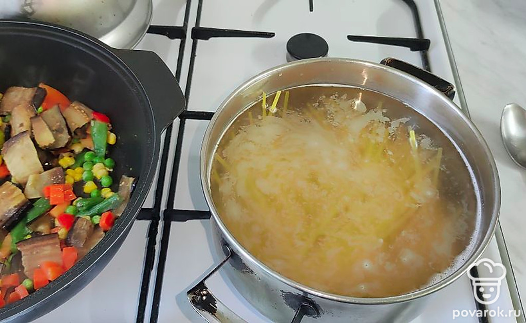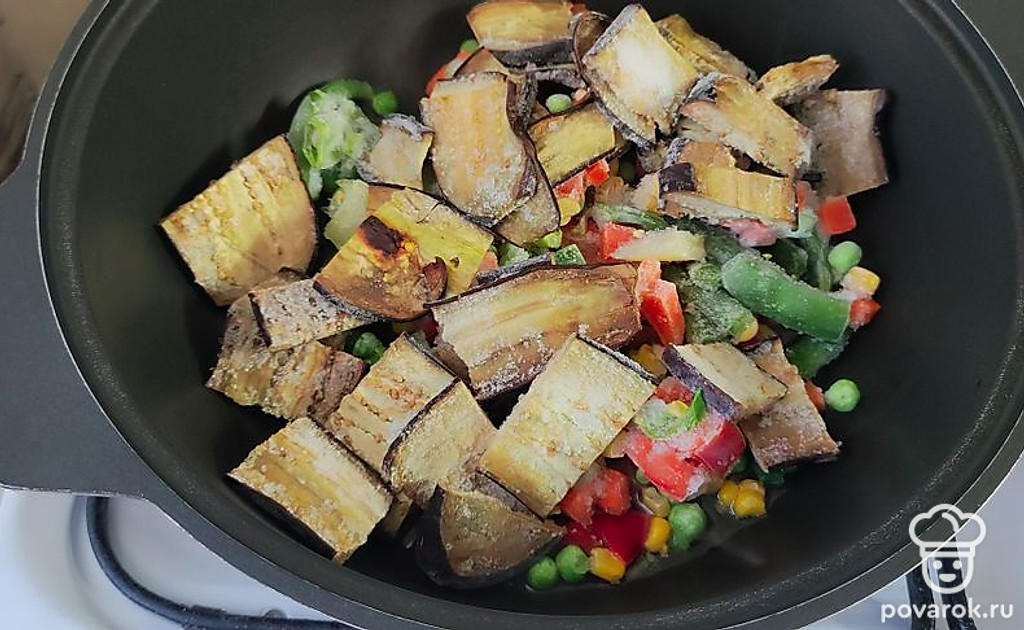 Быстрый и простой рецепт подойдет в качестве гарнира. Овощи можете использовать по сезону, свежие или замороженные.