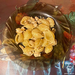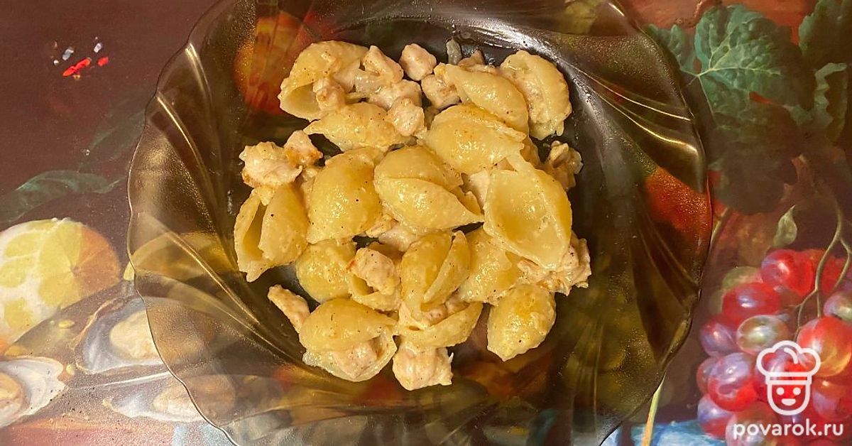 Блюдо «Ракушки в сырно-сливочном соусе» с овощами и куриным филе