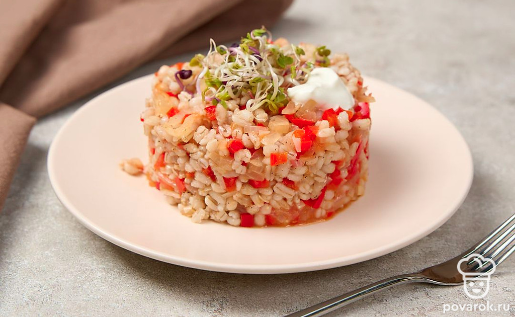 Благодаря нейтральному вкусу перловку можно подавать с любыми ингредиентами: мясом, рыбой или легкими овощными салатами. Кроме того, крупа отличается уникальным свойством впитывать в себя любую жидкость. Поэтому вы можете готовить ее на различных бульонах, делая вкус более ярким. В этом рецепте мы показали легкий гарнир из перловки с овощами. Он получается сытным и хорошо подходит для дополнения основных блюд.