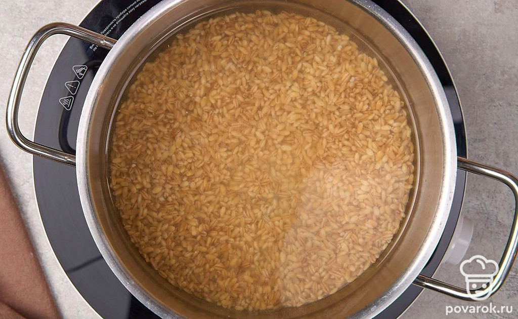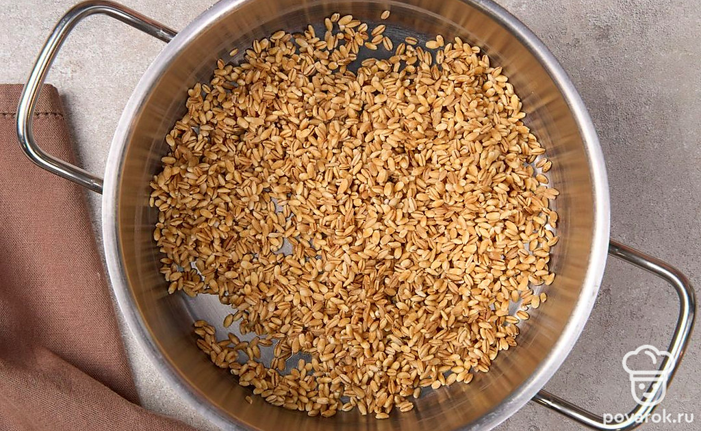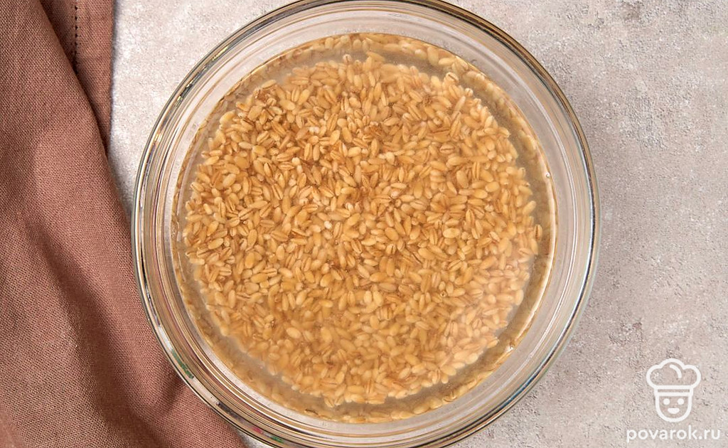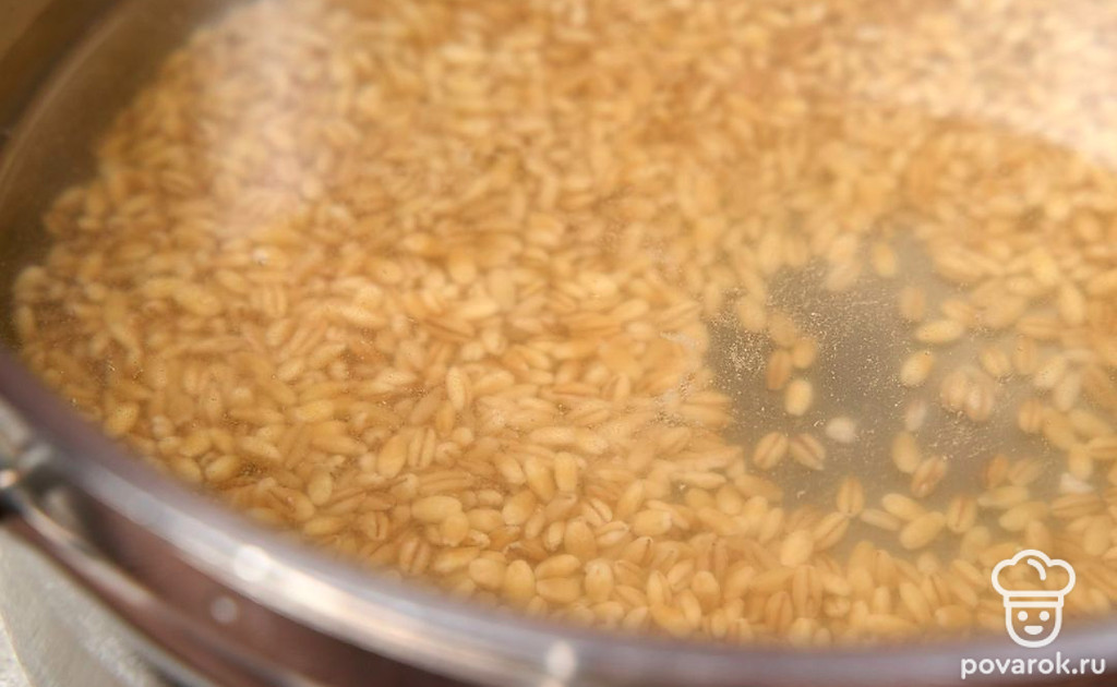 Когда перловка настоится, слейте воду и переложите ее в кастрюлю.