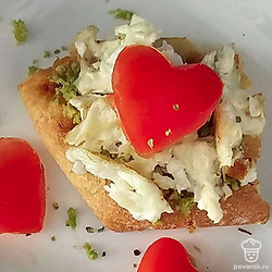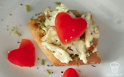 Приготовьте скрембл. Взбейте яйцо с солью, обжарьте на растительном масле. Вылейте яйцо на сковороду. Когда яйцо начнет схватываться, возьмите лопатку. Начните перемешивать. Готовый скрембл выложите на тост.