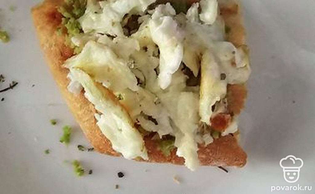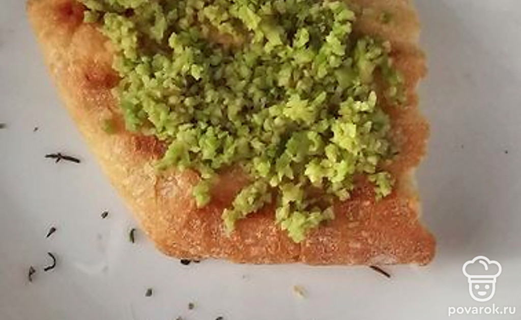 Обжарьте тост на растительном масле с двух сторон до золотистой корочки. Блендером пробейте авокадо, добавьте соль и оливковое масло. Выложите 2 столовых ложки на тост.