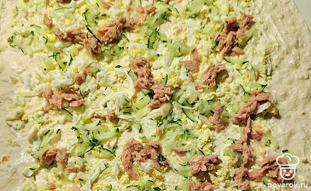 Лаваш с тунцом и огурцом к завтраку