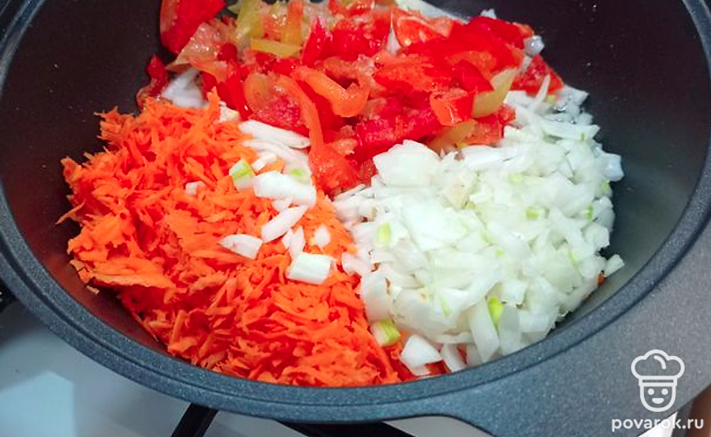 Овощи чистим, лук режем кубиком, морковь трем на крупной терке.