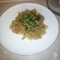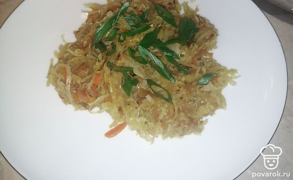 Тушить капусту до готовности, если капуста жесткая, то можно добавить немного воды. Затем добавить соль и любимые специи. В этот раз я взяла чеснок сушеный, черный молотый перец, молотый кориандр.