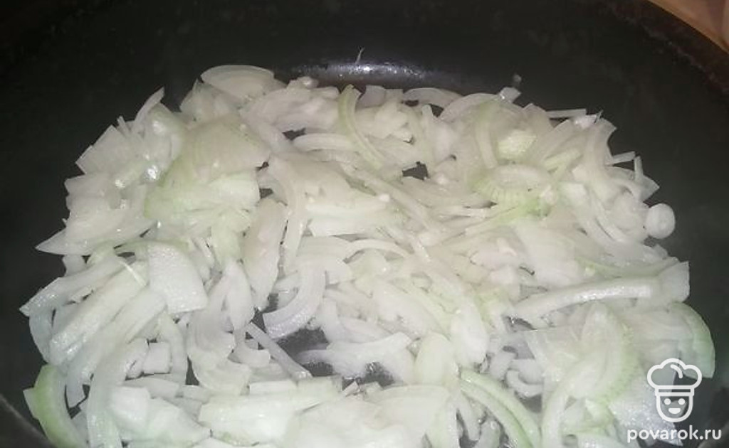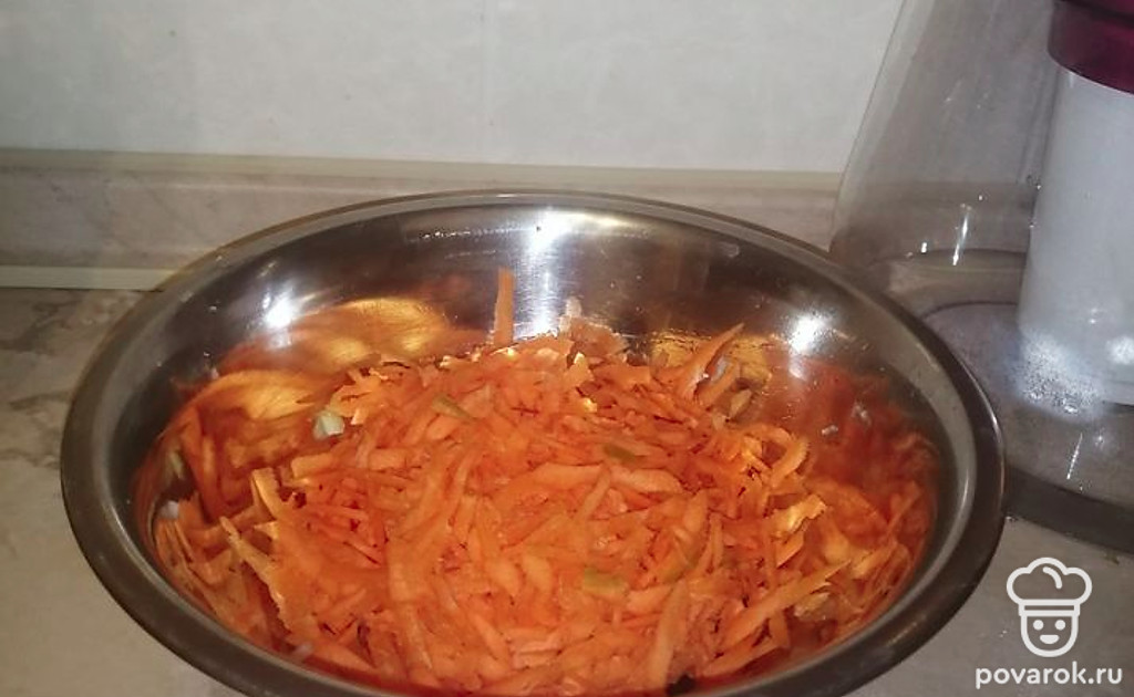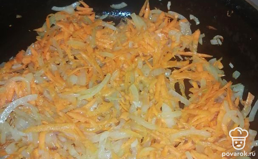 Когда лук начнёт приобретать золотистый оттенок, добавить морковь.