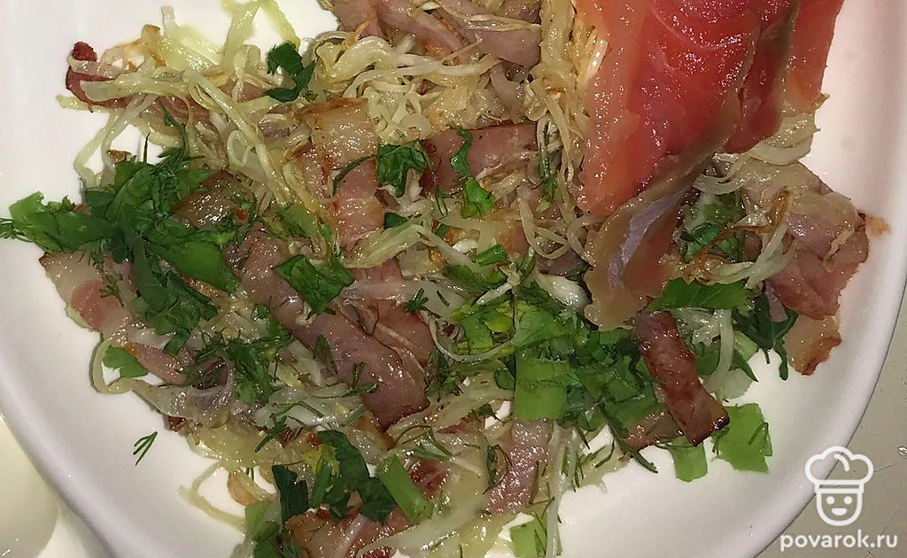 Жареная капуста с беконом