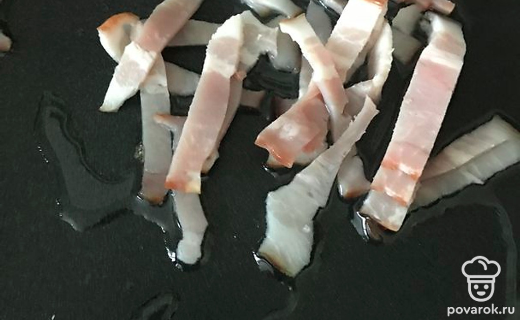 Порезать и обжарить бекон.