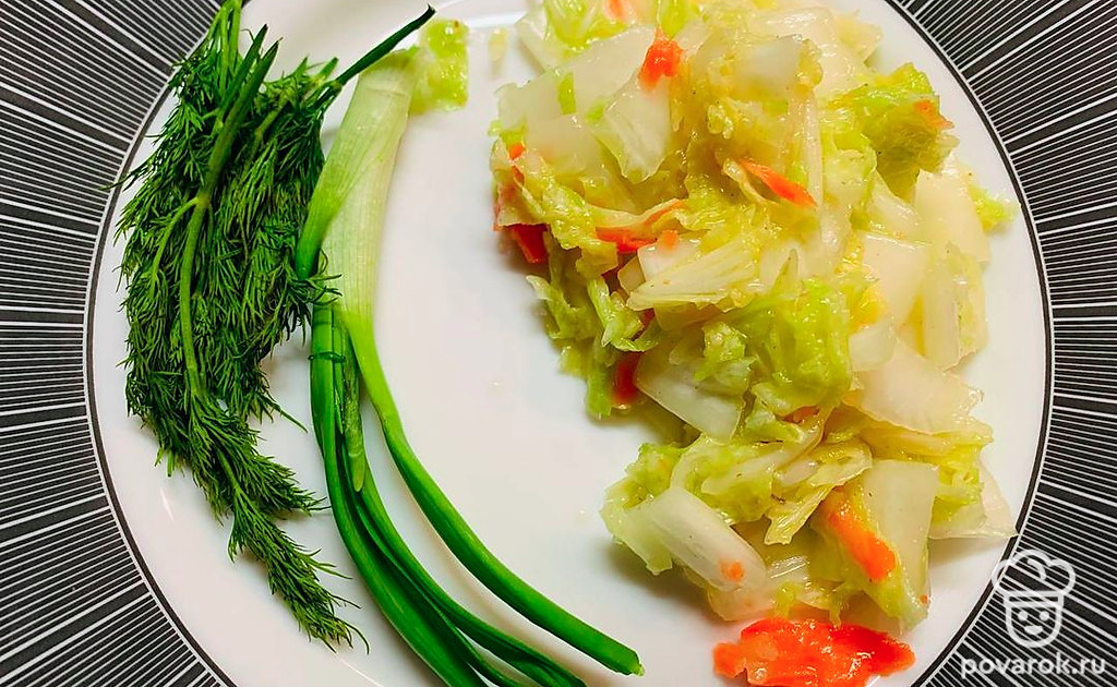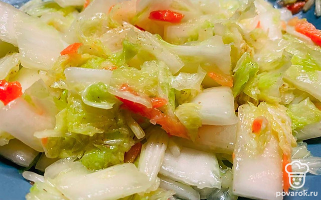 Из пекинской капусты можно приготовить очень вкусную закуску, замариновав ее по этому рецепту.