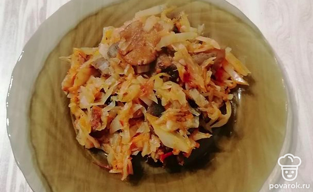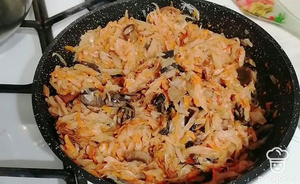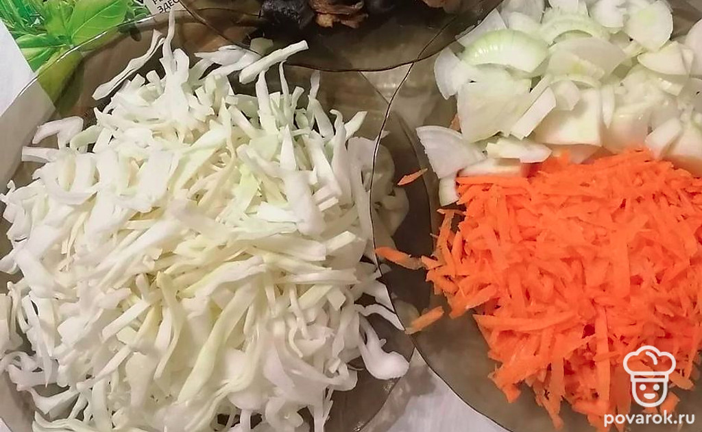Капусту нарезать соломкой, морковь натереть на терке, лук нарезать произвольно. Сковородку нагреть, соединить все ингредиенты. Добавить специи по вкусу, масло подсолнечное 2 столовые ложки.