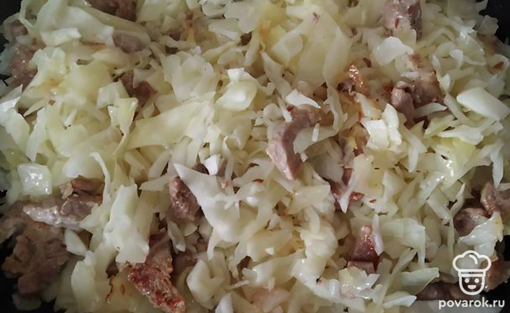 Выкладываем накрошенный репчатый лук. Солим по вкусу и томим все до готовности.