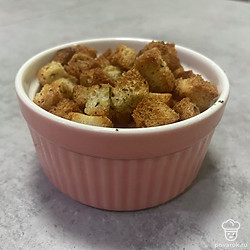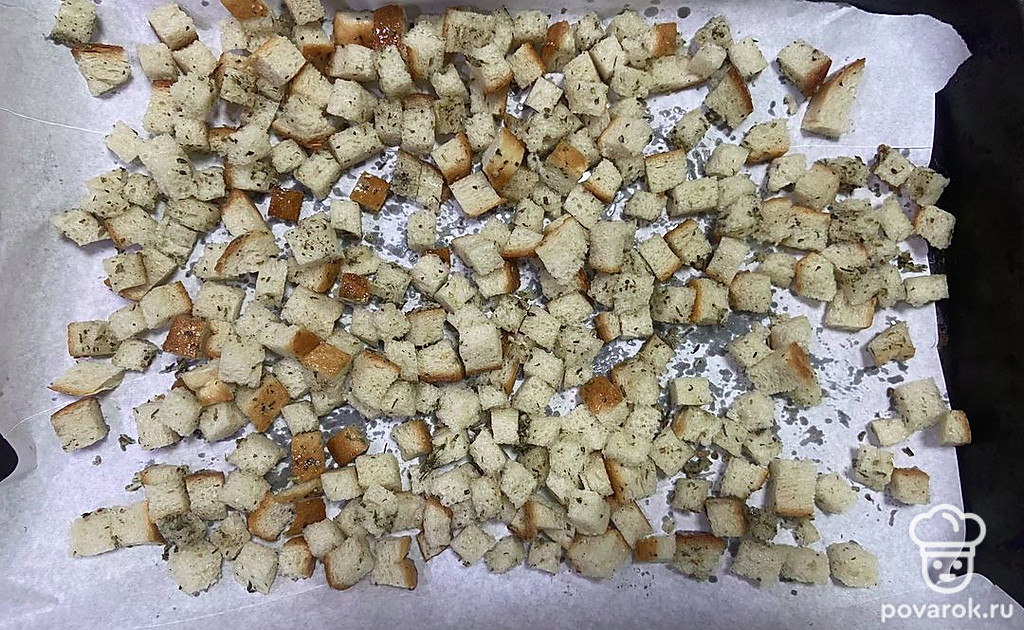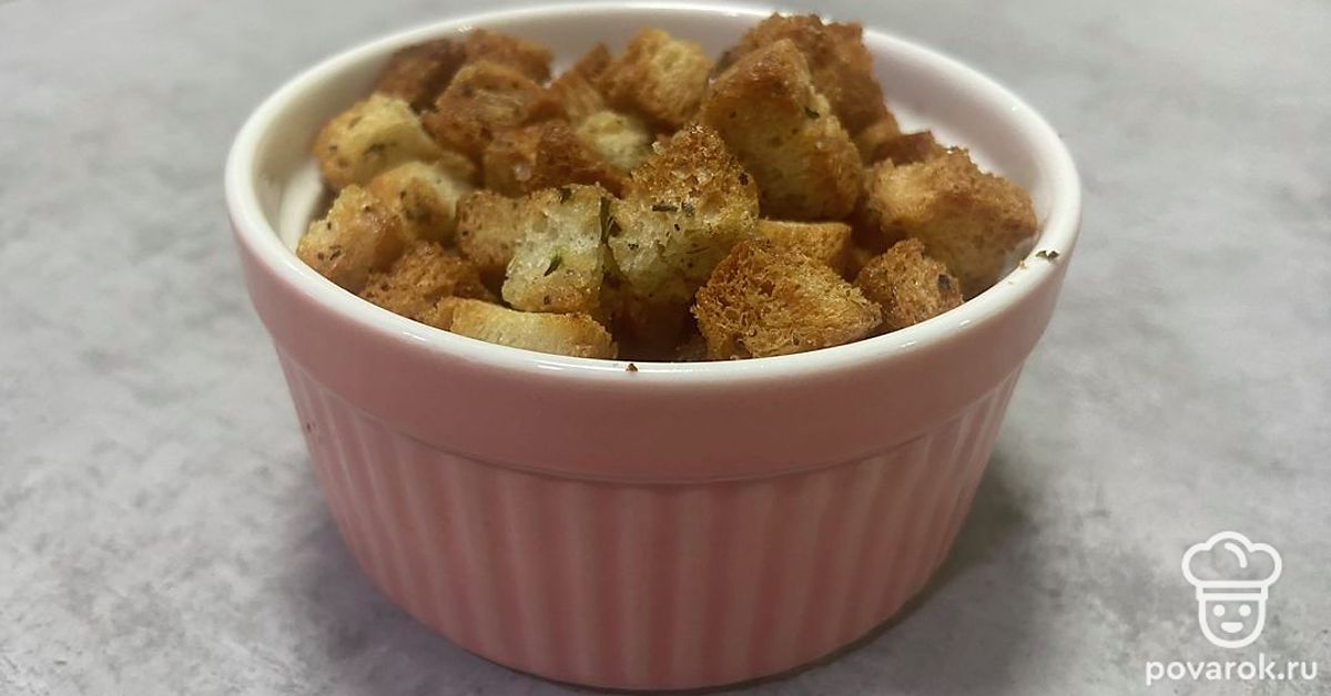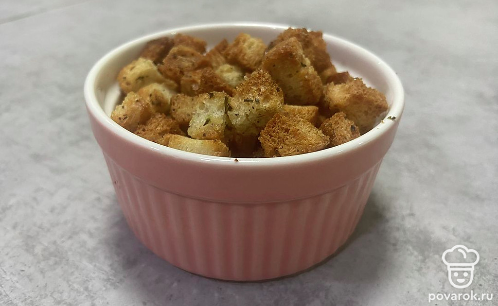 Хрустящие сухарики подойдут к салатам, супам. Их можно использовать как самостоятельную закуску.