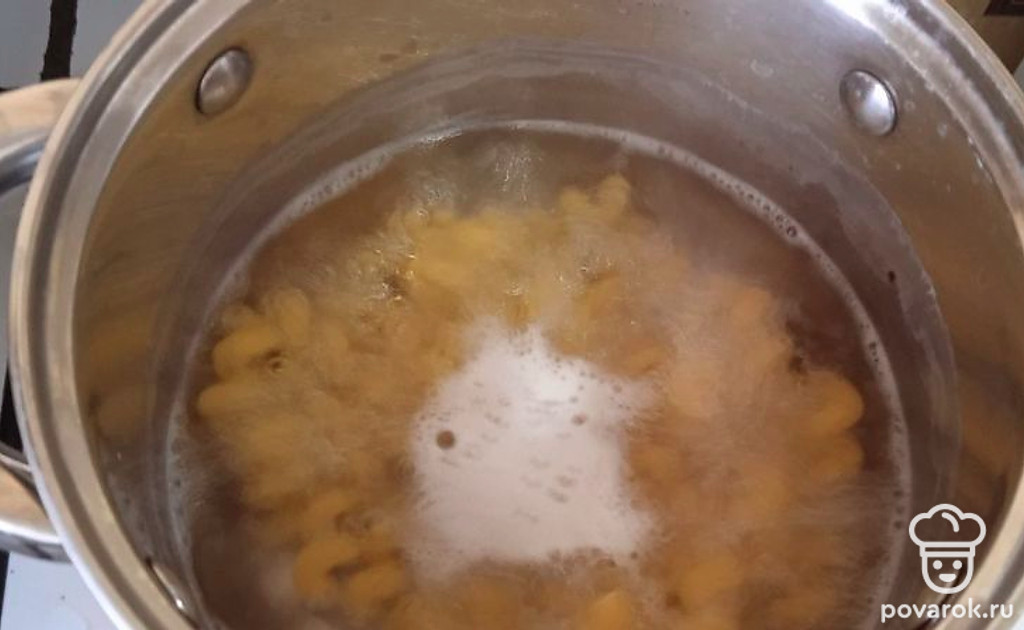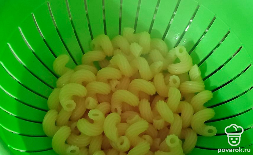 Готовые макароны помещаем в дуршлаг, сливаем воду.