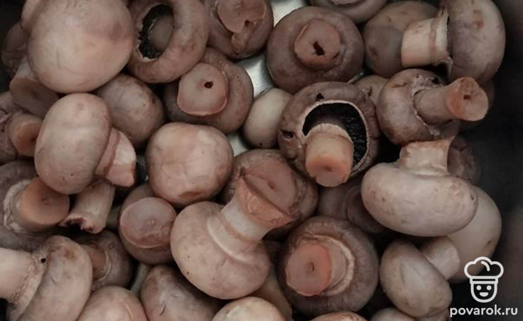 Шампиньоны хорошо помойте, отварите их подсоленной воде. Я варю 7 минут.