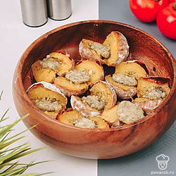 Для каждой картошки сделайте форму из фольги и подайте картофель в этой форме. Фольга сохраняет температуру готового блюда.