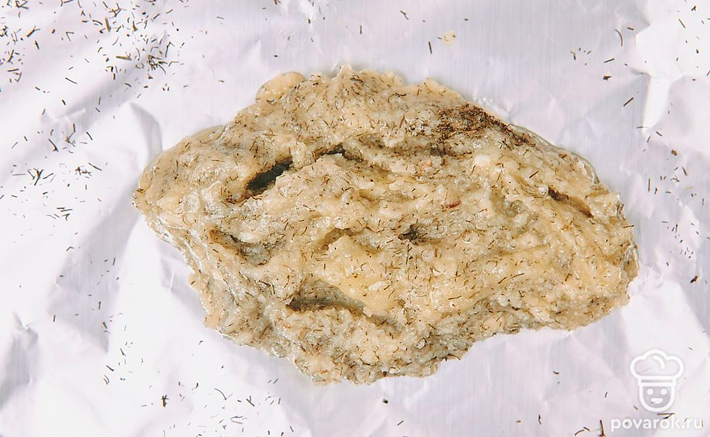 Заверните фольгу, сформируйте колбаску. Уберите фольгу в морозилку.