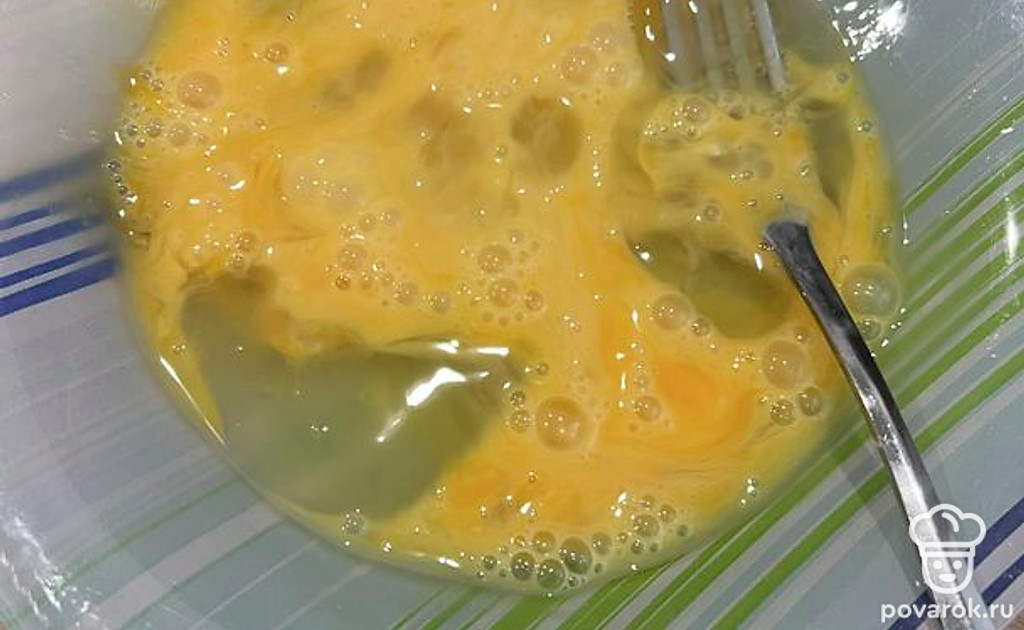 Два яйца разбейте в тарелку, взбейте, перемешивая желтки.
