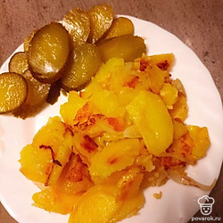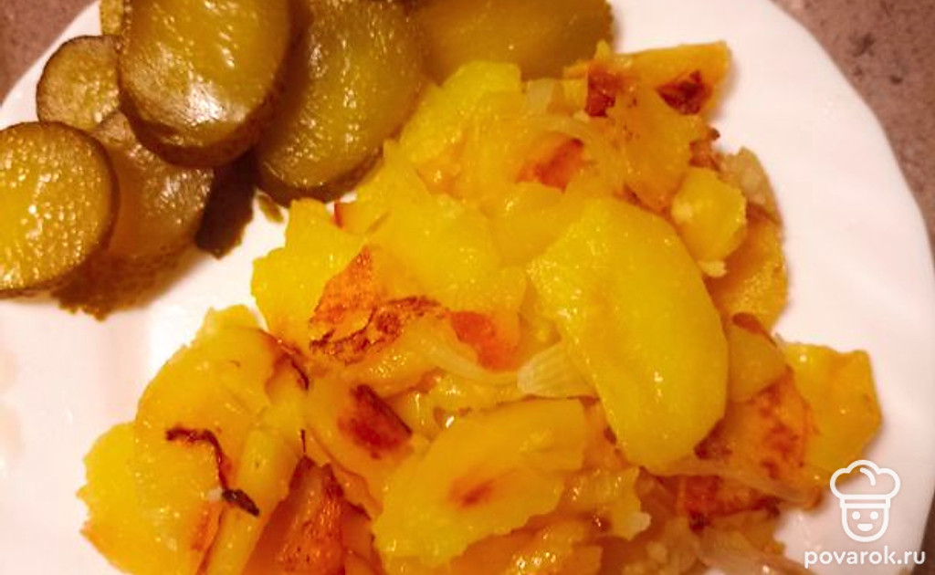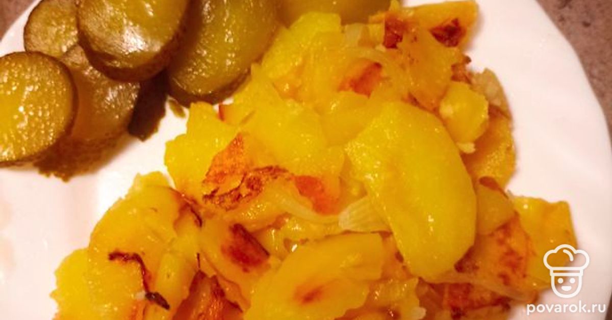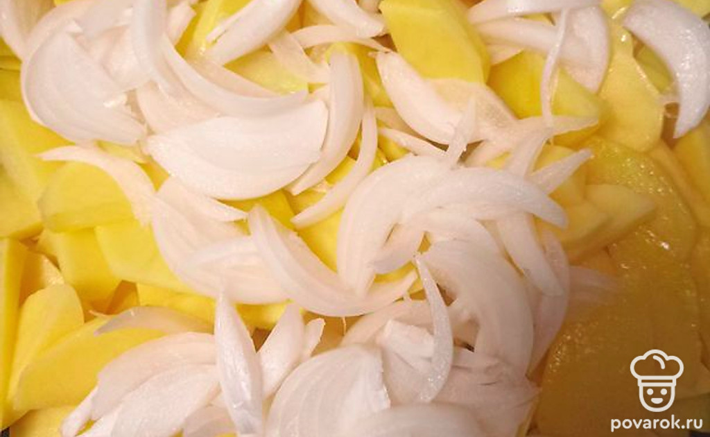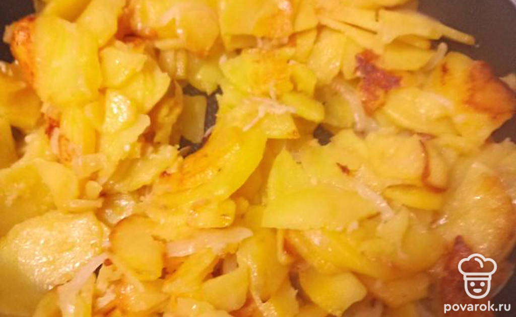 Порезать картошку с луком и положить в разогретую с маслом сковородку.