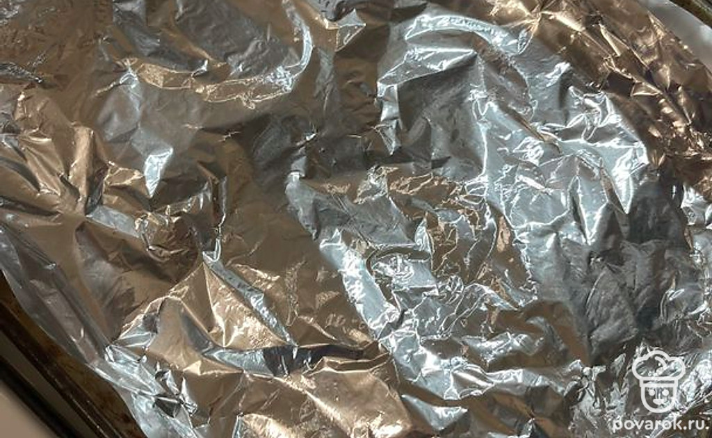 Закрываем фольгой и отправляем в духовку на 40 минут при температуре 200 градусов.