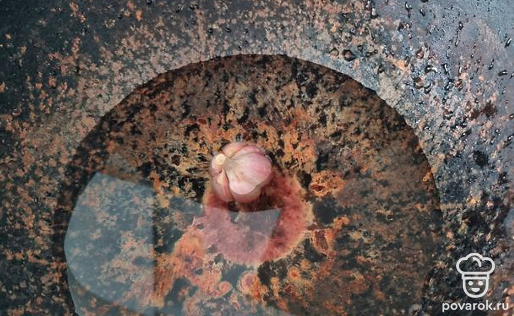 Наливаем в казан масло и прогреваем до кипения. Можно бросить головку чеснока для аромата.