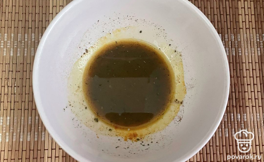 Приготовьте маринад. Растительное масло соедините с солью, измельченным чесноком, перцем.