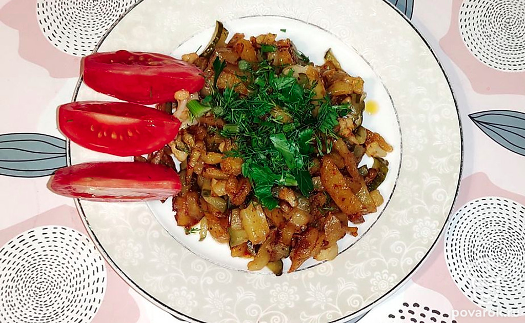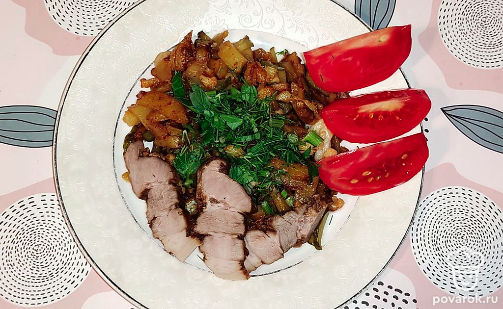 Украсьте блюдо свежей зеленью. Хорошо сочетается с копченой свиной грудиной или кусочками сала.