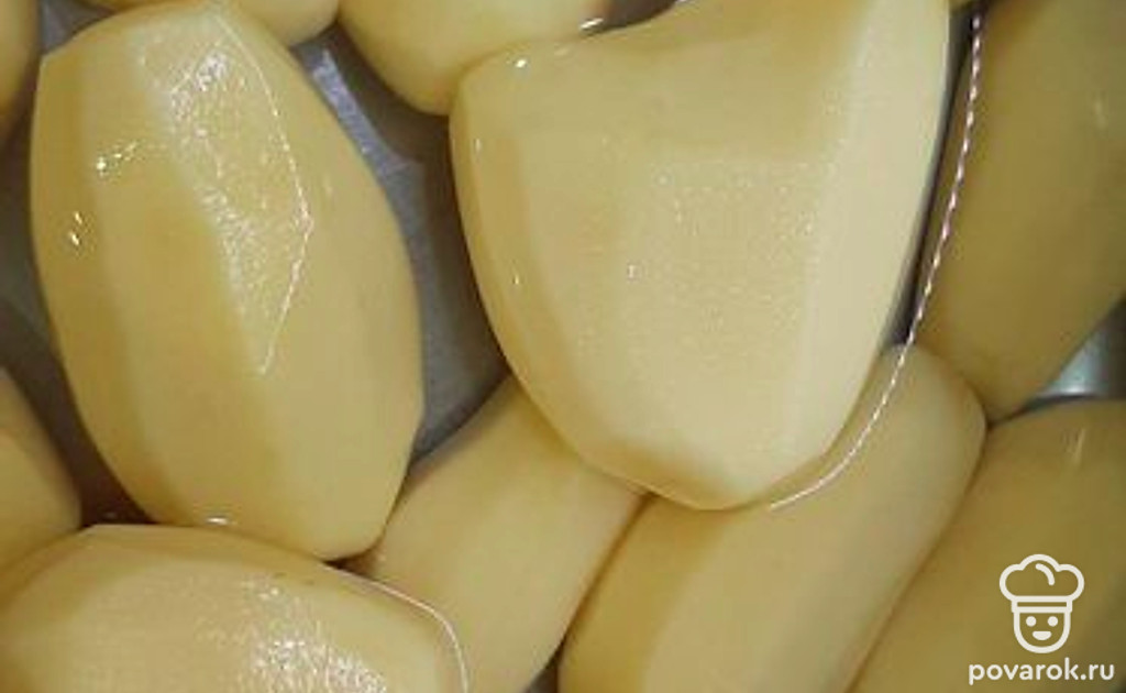 Подготовьте картофель, его обязательно нужно после очистки подержать в холодной воде, для того чтобы вышел лишний крахмал.