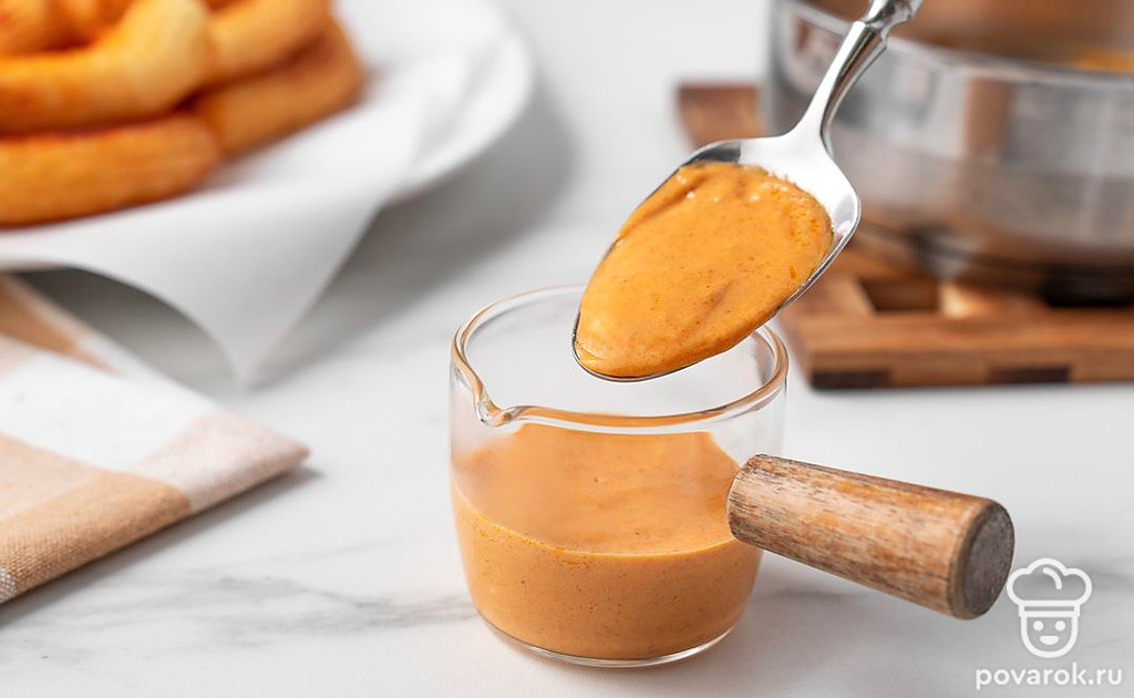 Перелейте соус в красивую пиалу или миску. Переложите картофельные чуррос на тарелку для подачи.