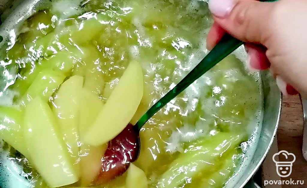Воду вскипятите. В кипящую воду отправьте картофельные дольки. Проварите 3 минуты, не больше!