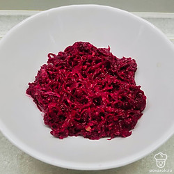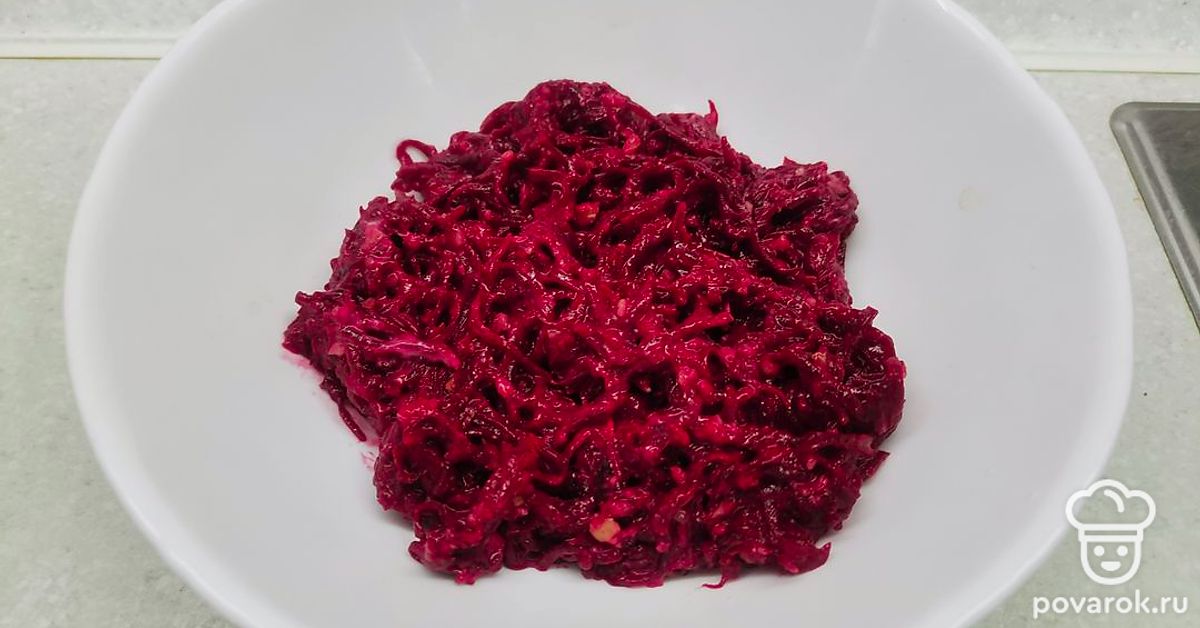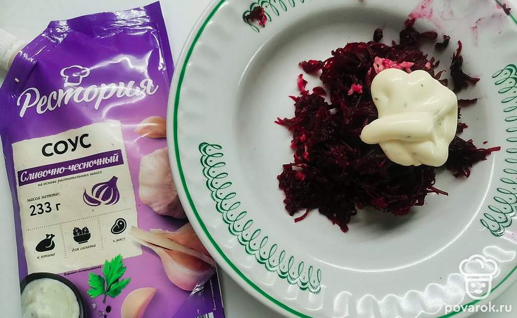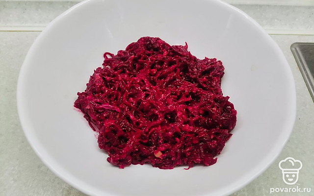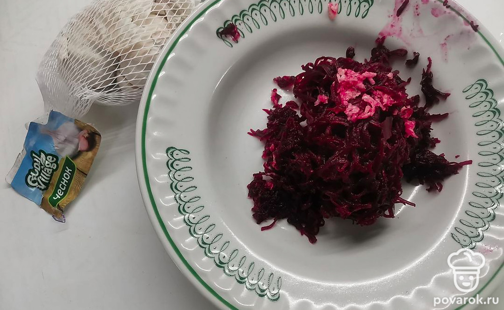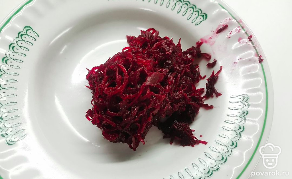 Вареную свеклу измельчите на мелкой терке.