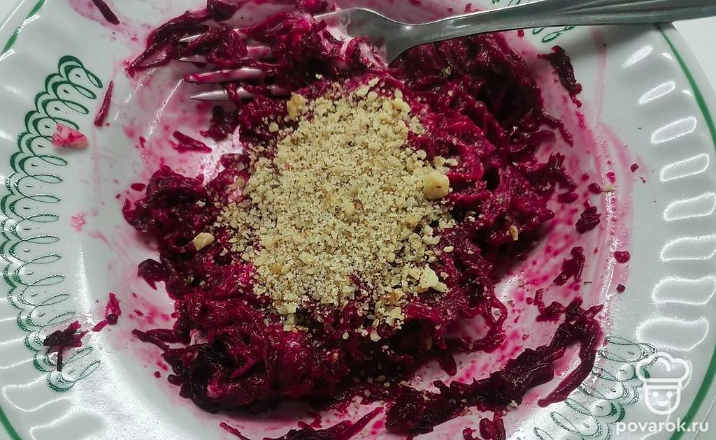 Свекольный салат с чесноком и орехами
