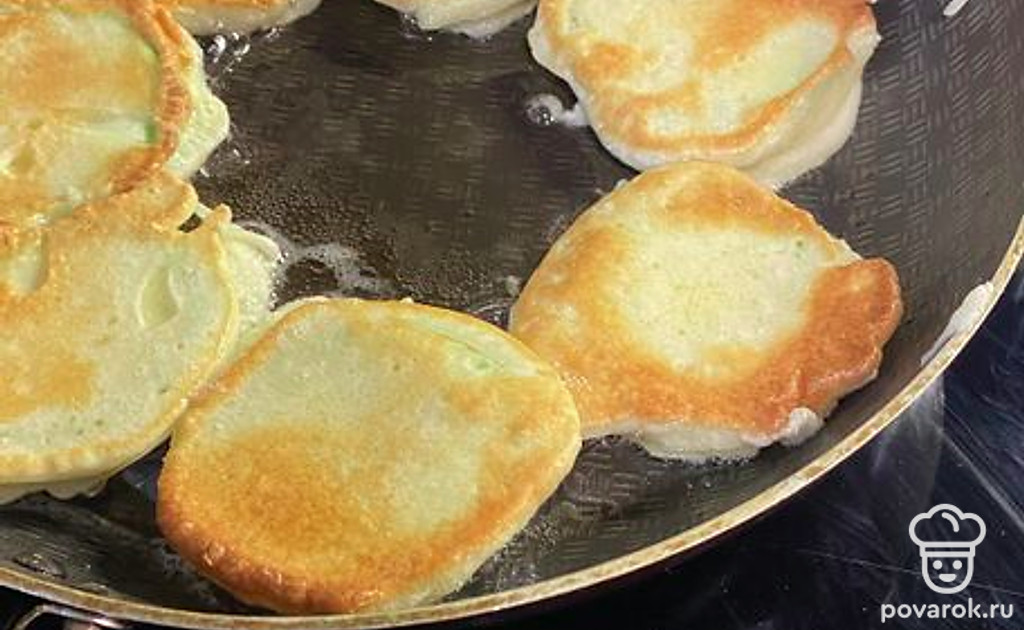 Обмакиваем кабачки в кляр и кладём на хорошо разогретую сковороду. Жарим на среднем огне.