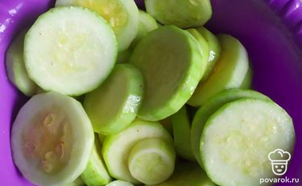 Выкладываем туда кабачки, перемешиваем и оставляем мариноваться 30 минут.