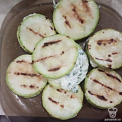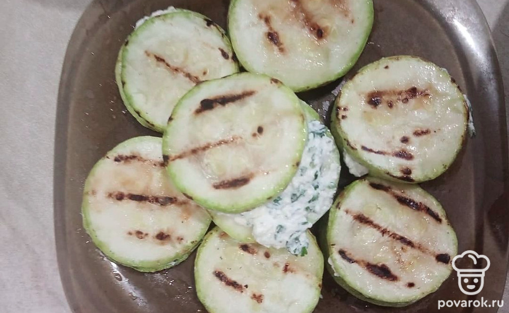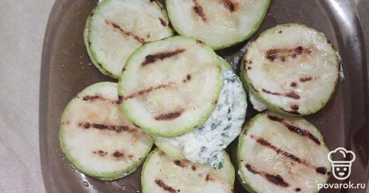 Жареные на гриле кружочки кабачков со сметаной и зеленью