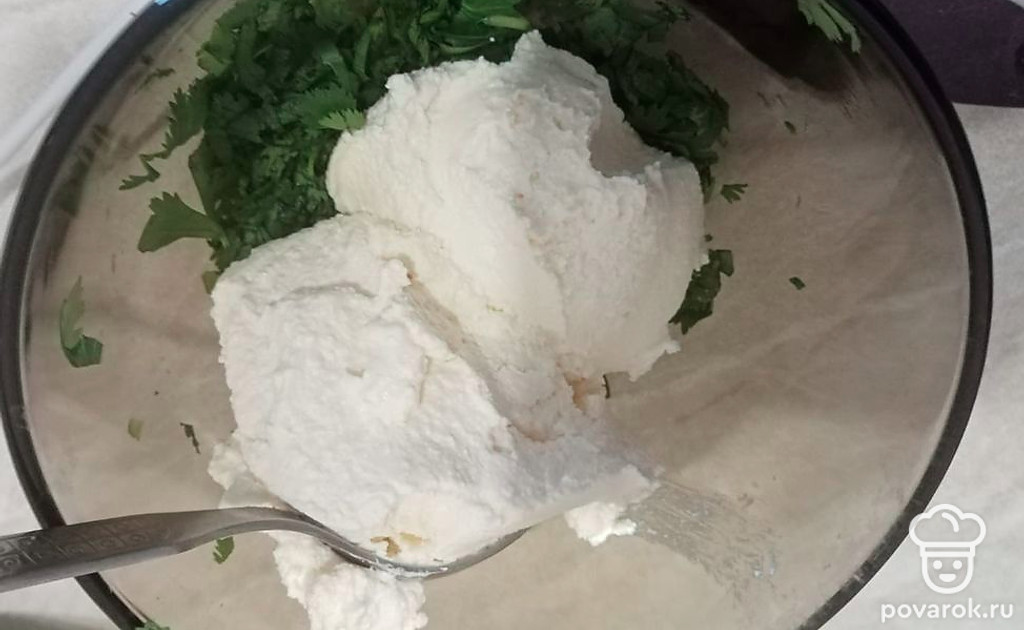 Для соуса смешайте сметану, чеснок измельченный и соль.