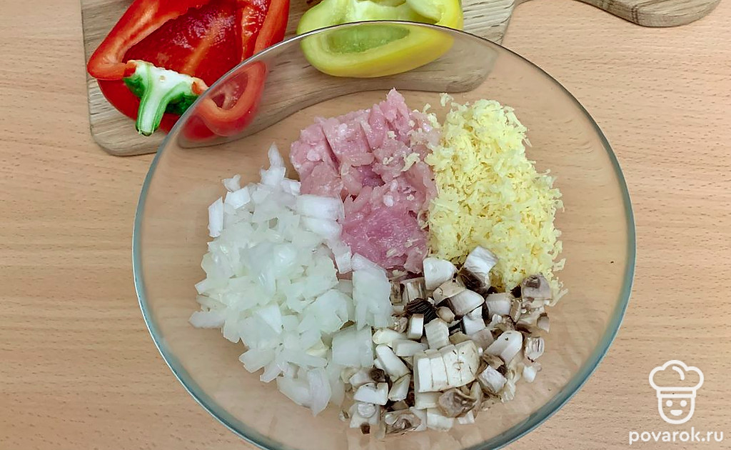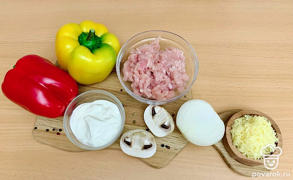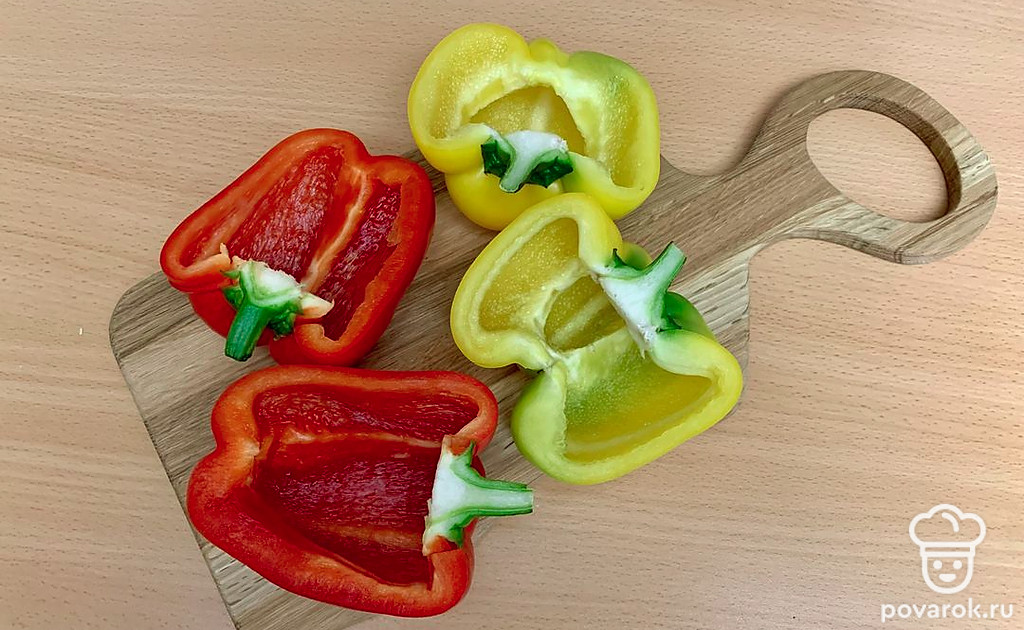 Подготовьте все ингредиенты. Выбирайте перец разных цветов, так вы получите красивое и яркое блюдо.