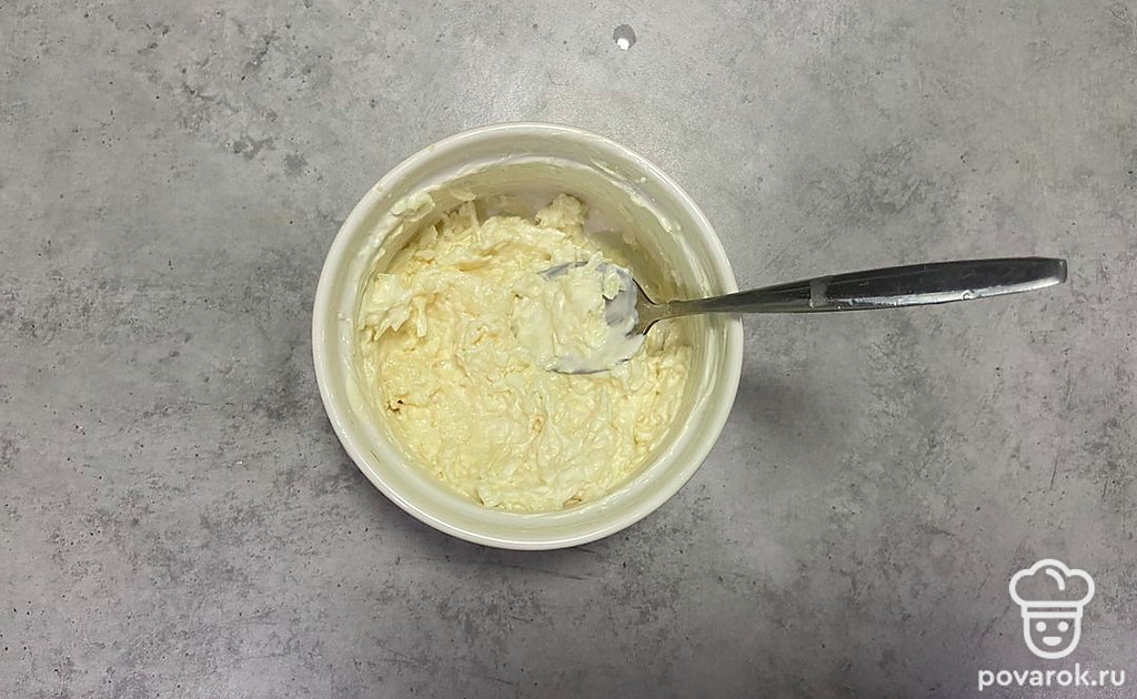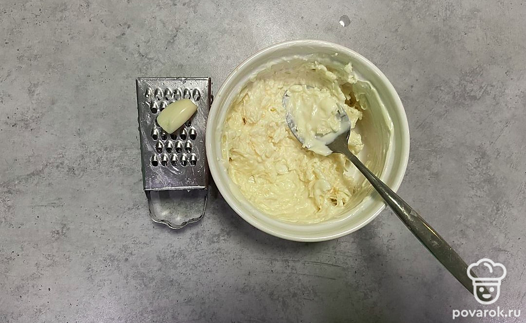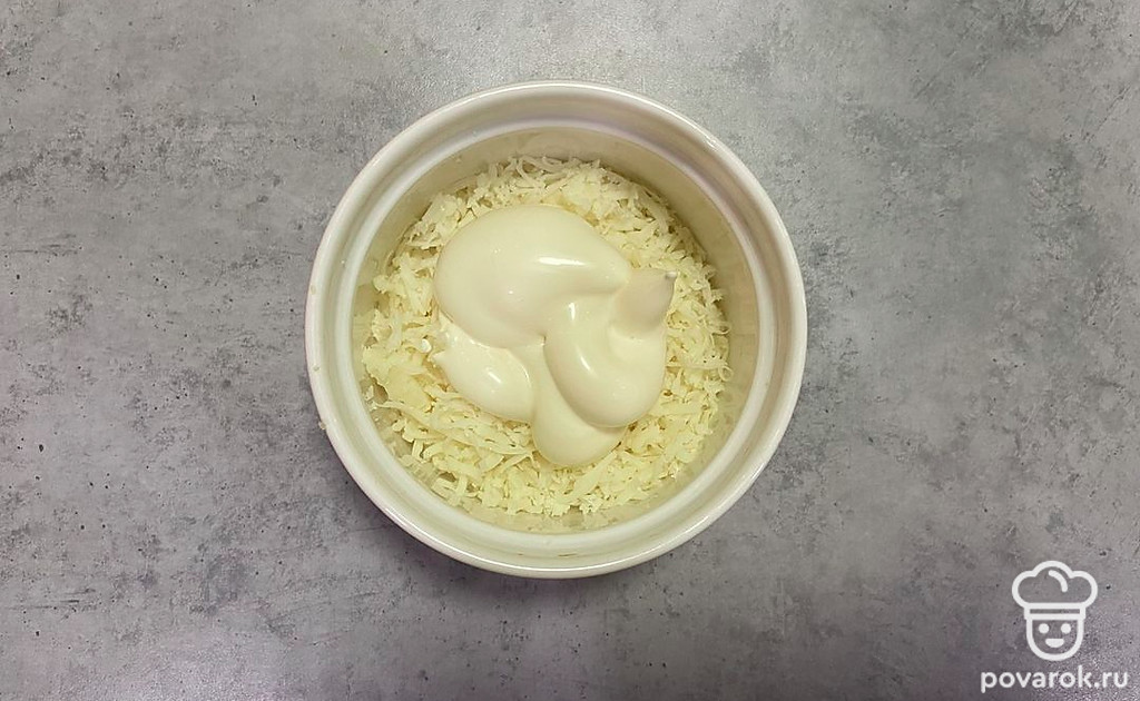 Сыр натрите на мелкой терке и добавьте в него майонез.