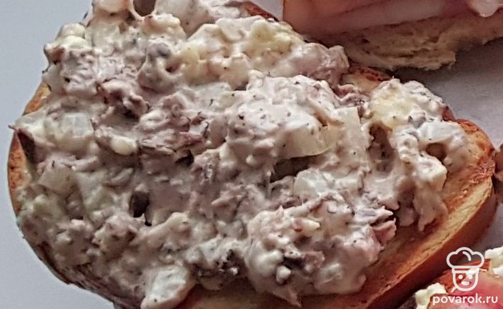 Выкладываем начинку на хлеб. Можно добавить специи по вкусу.