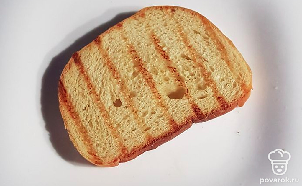 Обжариваем хлеб до золотистой корочки с двух сторон.