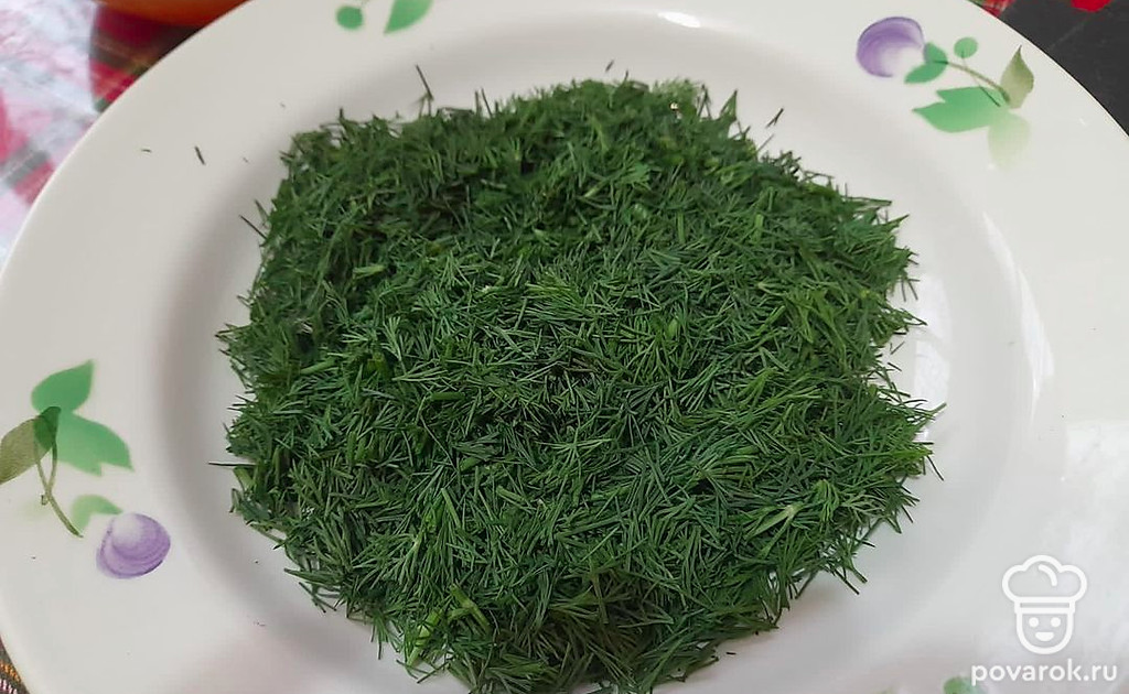 Нарезаем мелко зелень в блюдо, в которое удобно окунуть закуску.
