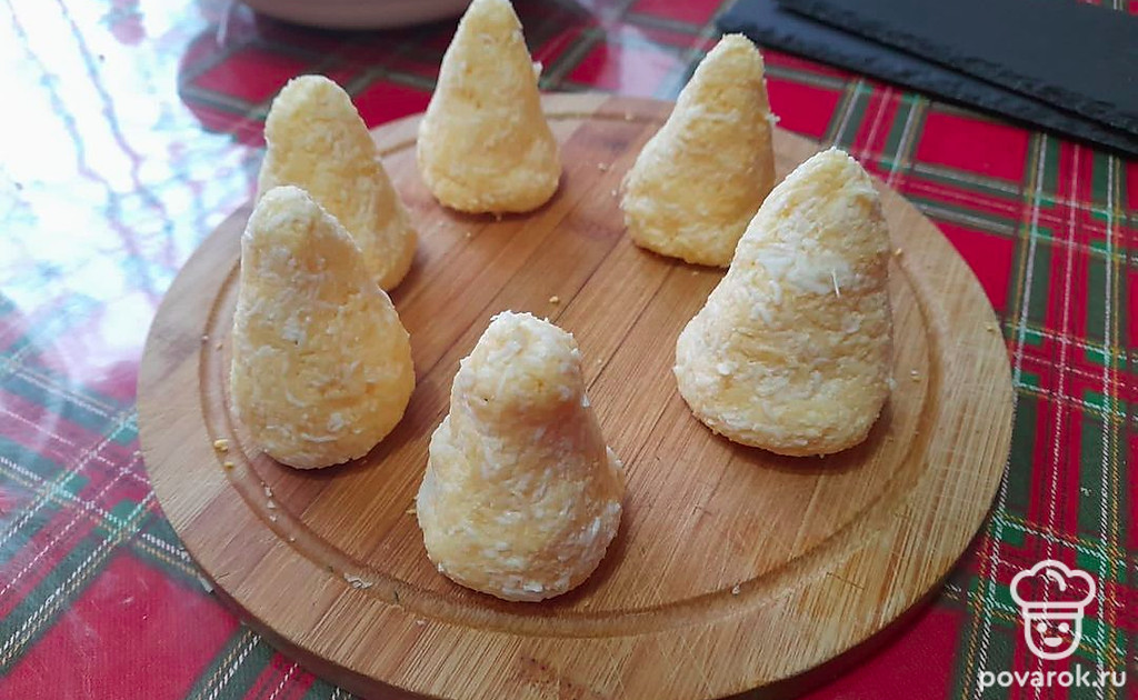 Тщательно перемешиваем массу и лепим конусы елочек.
