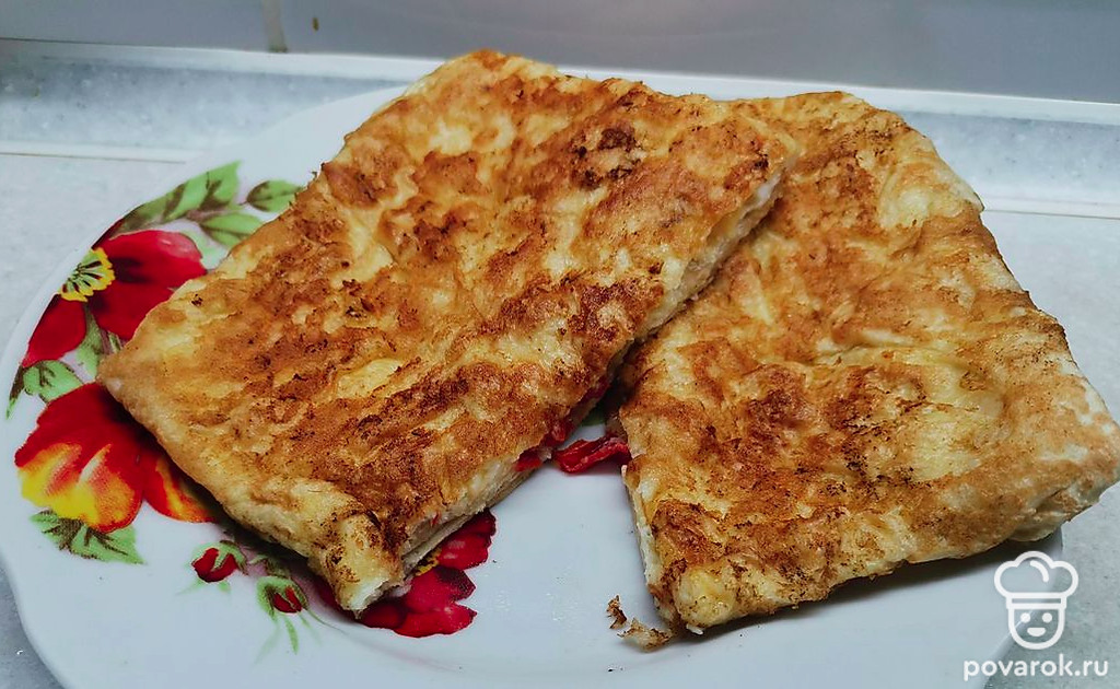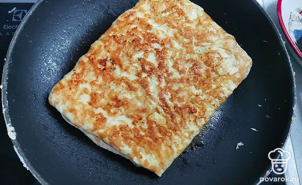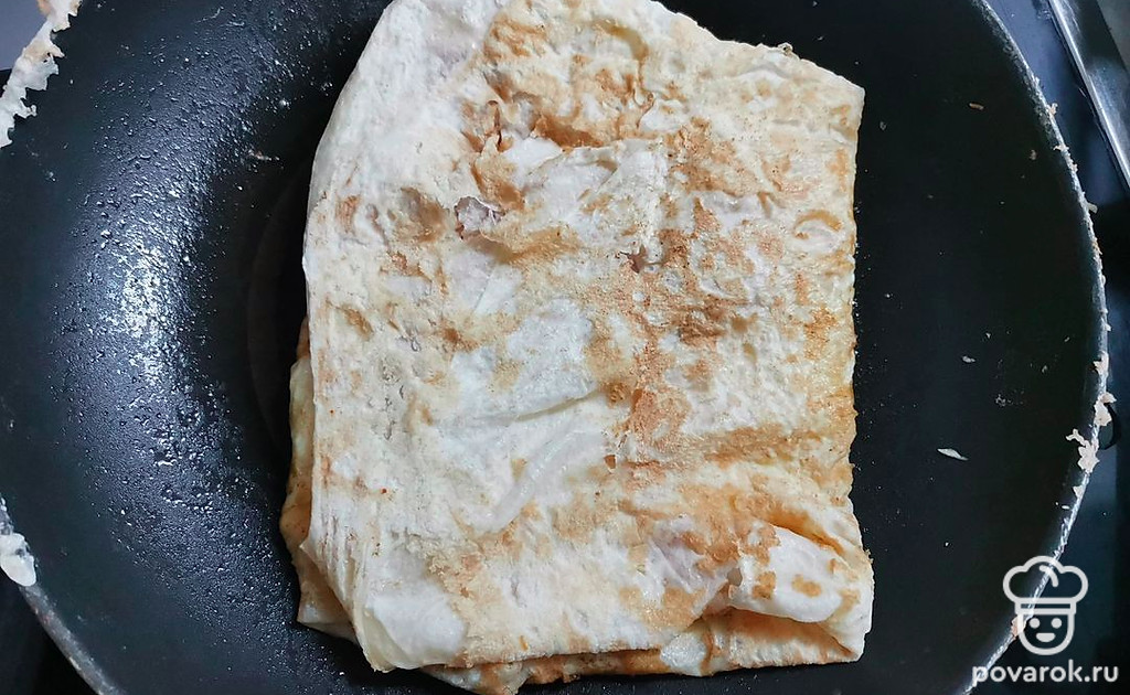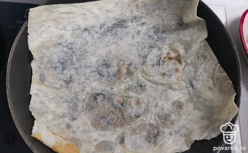 Обжарить лаваш с двух сторон, до румяной корочки. Аналогично приготовить остальные лепешки.
